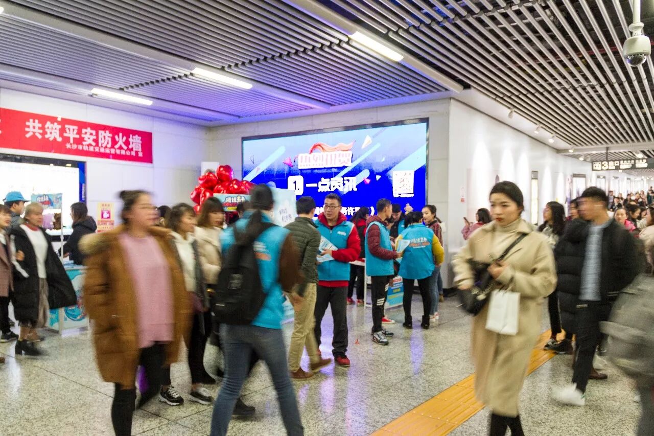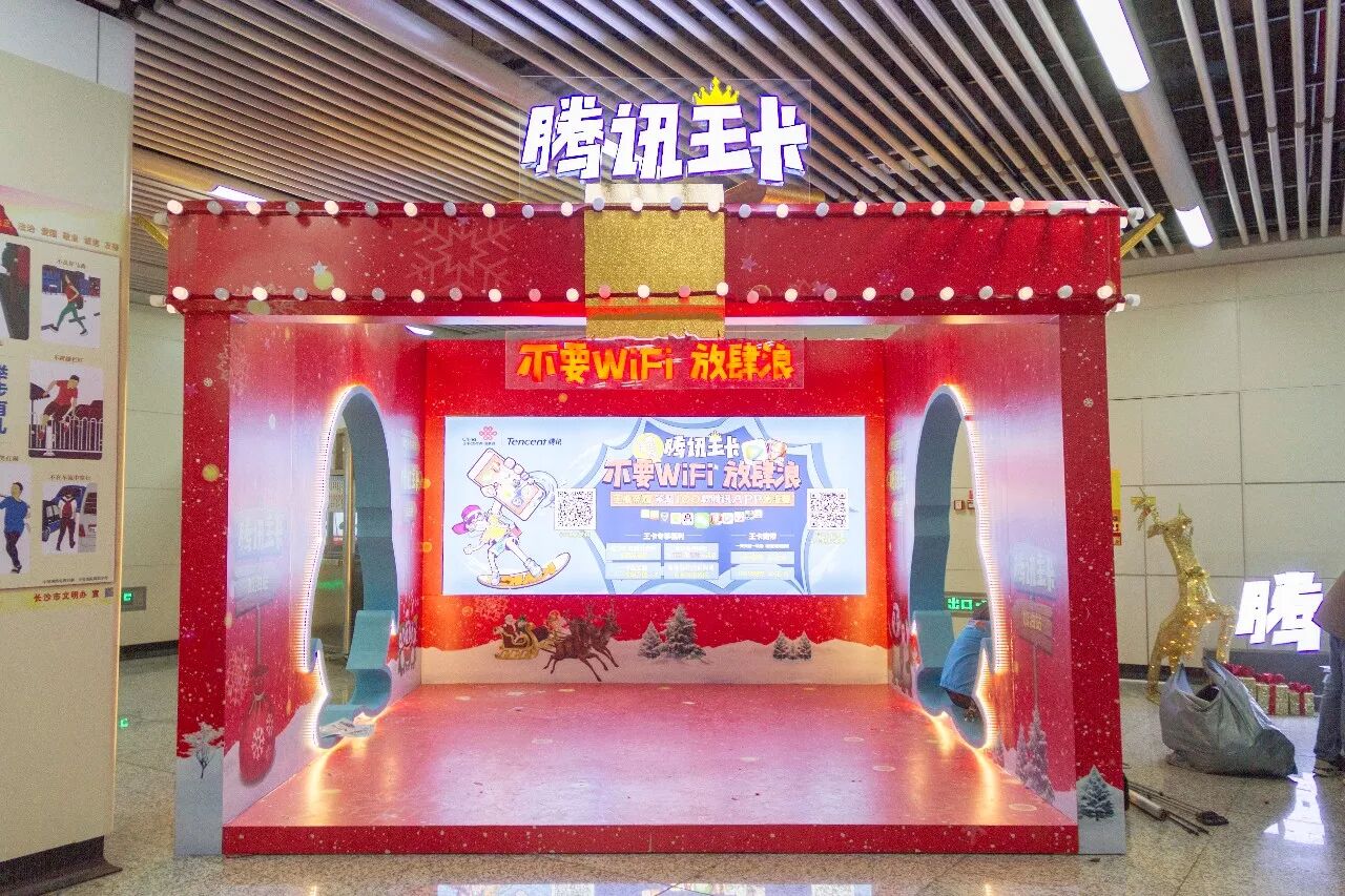 △它有灯光璀璨的红色礼盒外框 和大大的腾讯企鹅造型门 △闪亮的皇冠LOGO地牌,金色的麋鹿 成为店面吸睛氛围装饰 △湖南联通的小伙伴们 为地铁乘客带来了“圣诞礼物” △现场办理腾讯王卡超方便 让你马上变身流量老司机 △五一广场人潮涌动 更多的福利活动正在开展中~ 原来这是中国联通携手天闻地铁传媒 在长沙地铁打造的首家“腾讯王卡”快闪店 在这里你不仅能咨询这款明星产品的信息 还能参与到湖南联通不定期的节假日活动中 参与现场拍照打卡、摇骰子、体感等互动游戏 更有机会免费领腾讯王卡、赢得可爱公仔哦! 在中国联通“腾讯王卡”面市的一年多里 市场营销策略与媒体展示不断推陈出新 除了圣诞、新年特别定制的“王店礼盒”亮相 中国联通“腾讯王卡”还曾霸气占领候车区 以亮眼的屏蔽门贴吸引了市民乘客关注 新一期“自由联通 爱在一起”系列主题海报 也已陆续在长沙地铁灯箱上刊 匆匆穿梭在人潮中的你惊鸿一瞥 或许不经意间就感受到来自联通的温暖心意哟