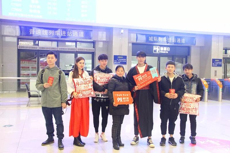 常德桃花源派出的“使者”准备登上专列派发新春红包。