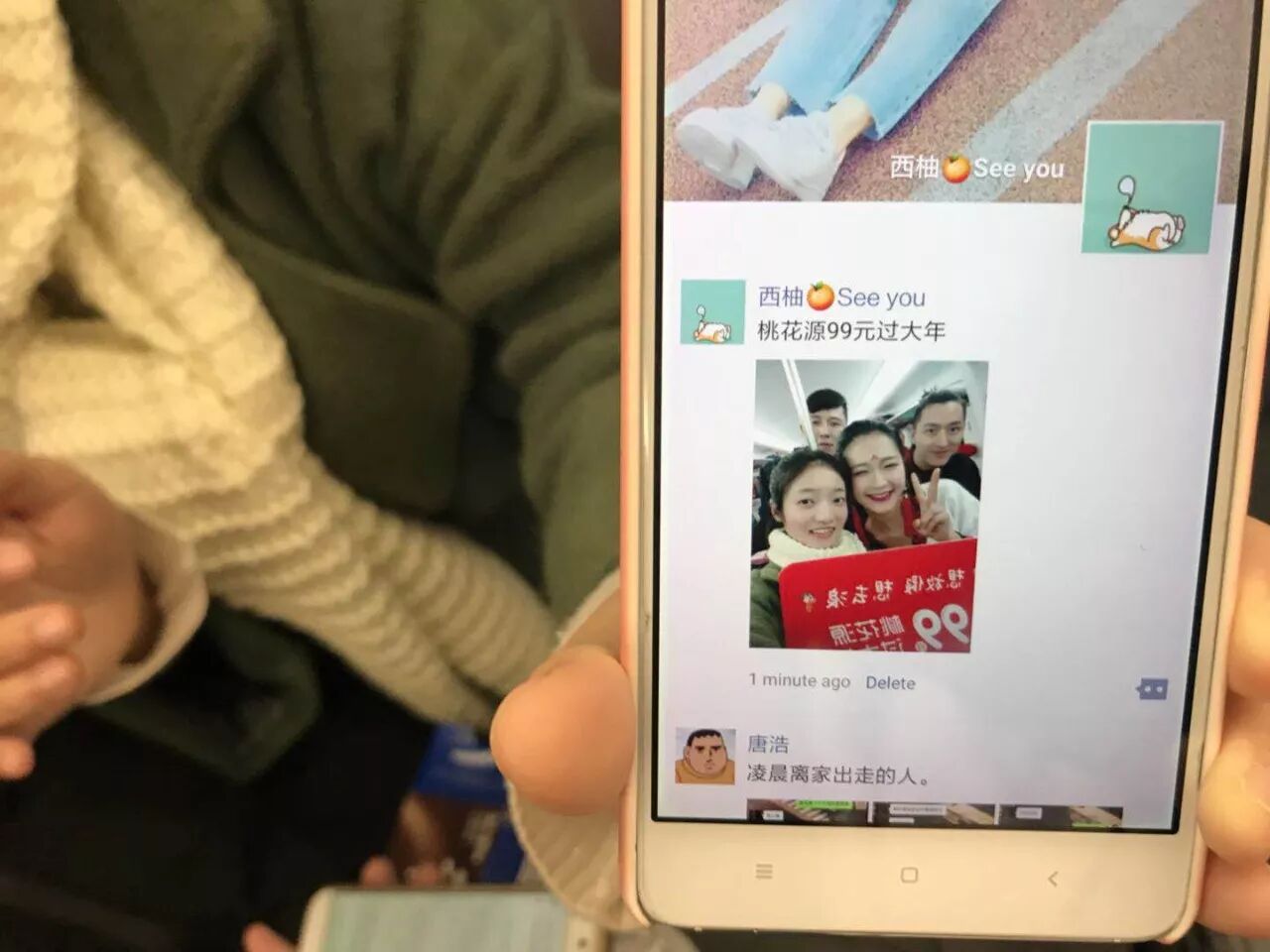 专列内除了年味浓,还有着秦装的“桃花源使者”为乘客派发红包,邀请各位旅客前往桃花源过大年。