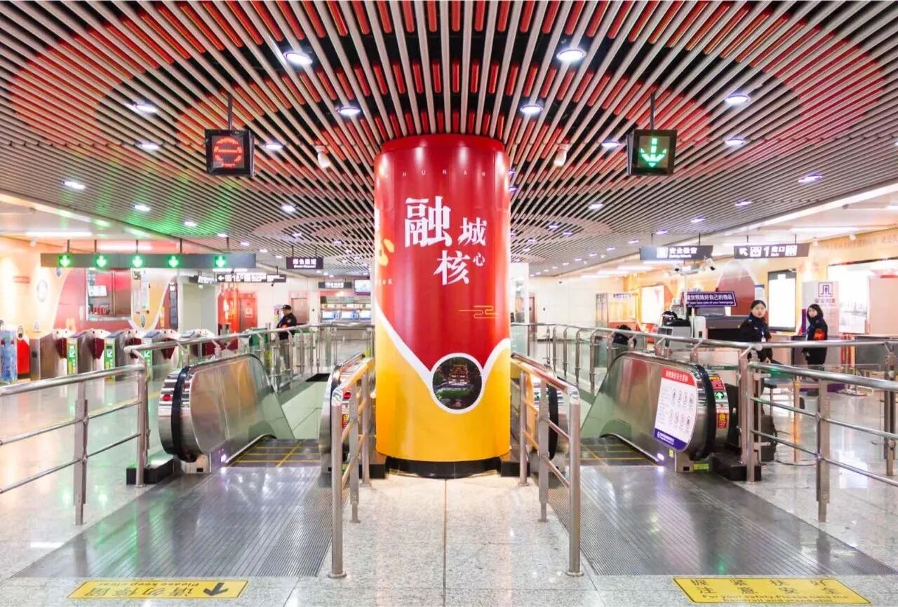 这座由中共长沙市天心区委员会、长沙市天心区人民政府、长沙轨道、天闻地铁传媒携手打造的政务主题地铁站,以“融城核心·璀璨天心”为策划主题,将天心区的发展理念、战略规划、奋斗目标深深融入站厅设计之中。1600平米的主题地铁站厅以红黄暖色为设计基调:中国红映衬着春节喜庆氛围,麦穗黄寓意新年满载收获,大灯笼、梅花枝、祥云妆点其中,一幅幅精美大气的天心图集“如数家珍”的展示天心面貌……让进入到地铁站的市民乘客迎面感受到天心区的奋斗热情与温暖幸福,直呼“挺有年味”、“很走心”、“大气漂亮”!