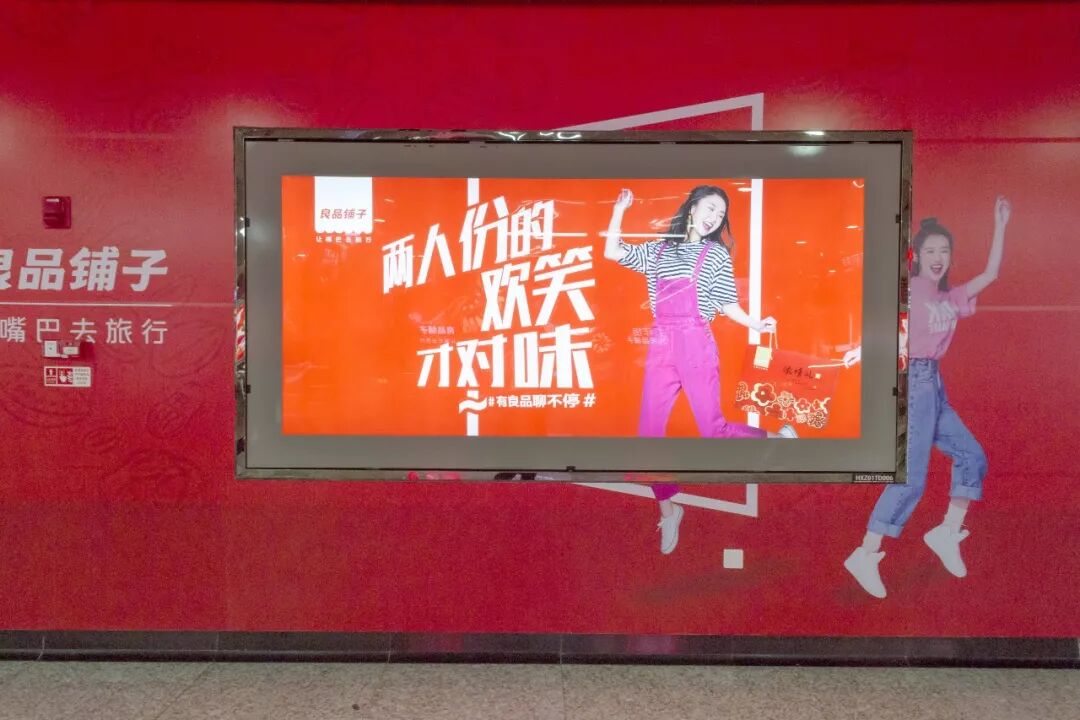 良品铺子春节期间在地铁的营销可谓是火力全开,分别在年轻人群聚集的黄兴广场和住宅集中的万家丽广场打造品牌站厅,强势发声。春节客运高峰的火车南站良品铺子也没有错过,以包柱的形式覆盖火车南站客流。此外,灯箱覆盖全线客流,营造春节期间良品铺子“刷屏式营销”,使品牌深入人心。