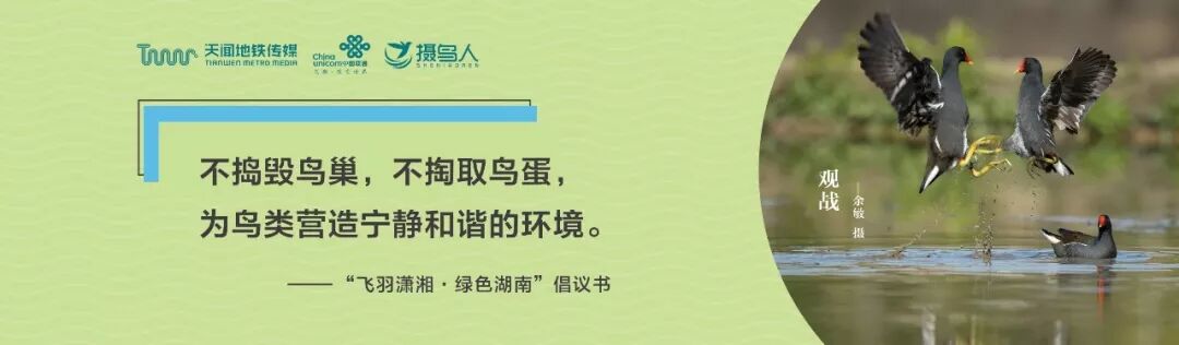 还飞鸟以蓝天,打赢蓝天保卫战。天闻地铁传媒联合长沙联通、摄鸟人网,发起 “飞羽潇湘·绿色湖南”倡议书,倡议爱鸟,护鸟,共同保卫蓝天。