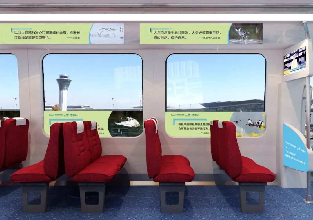 此趟磁浮专列以保护鸟类为主题,通过摄影记录湖南珍稀野生鸟类影像,以警醒的文字传达保护生态环境的重要性和迫切性。