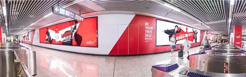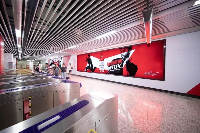投放策略:此次百威啤酒广告投放在站点上选择的是客流量位列第二的国字号枢纽火车南站,可无缝换乘高铁、磁浮,真正实现轨道人群全覆盖!在媒体选择上运用大面积、多角度进行展示,封闭的空间,鲜亮的画质,多彩的画面,绚丽的图文,呈现的是广告,亦是风景。