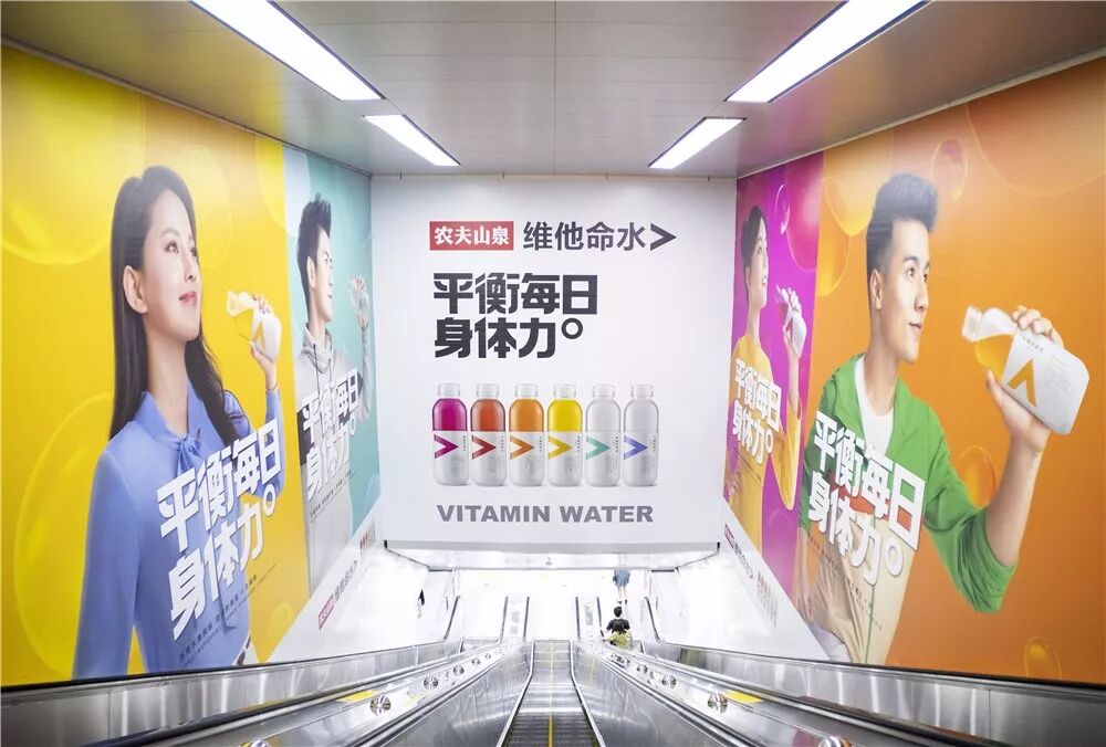 投放策略: 农夫山泉作为天闻地铁传媒的“老搭档”,在本次维他命水的广告亮相上,也是选择了客流量位居前列的两大换乘站,在双线进站及换乘客流突破221万人次/月的溁湾镇站选择了发布面积大、连续性强、色彩还原度高的超级梯眉,媒体强力覆盖河西核心商圈及大学城。在长沙地标五一广场站的5号口打造品牌通道,强力覆盖城市CBD核心商圈,打造最IN品牌通道。