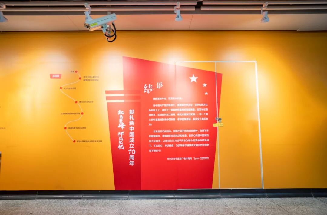 站厅另一面则是由怀化市文化旅游广电体育局推出的“红色雪峰·怀化记忆”主题图片展,翻开风云激荡的红色篇章,是一部我们党坚守初心和使命的生动教材。整个站厅文化墙图文并茂,分为“前言”、“光辉足迹 砥砺前行”、 “怀化红色旅游精品线路”、“结语”四大篇章,跟随站厅“走过”怀化7大红色旅游景点,“通道转兵”、“芷江受降”、“湘西剿匪”等历史丰碑事件又浮现在眼前。我党早期著名的妇女运动领导人向警予,“常胜将军”、新中国开国第一大将粟裕,中国人民解放军的领导者之一、新中国人民铁路事业的奠基人滕代远,都是从故乡怀化走上了革命的道路;建国初期,英勇的中国人民解放军在这里书写了湘西剿匪的英雄壮举;世界杂交水稻之父袁隆平也是在怀化的安江农校研究成功了杂交水稻,创造了以“一粒种子改变世界”的传奇……正因为有千千万万像他们一样,怀着改变国家民族命运的一代代人英勇奋斗,砥砺前行,才有了今天的新中国,也才有了 我们今天幸福的生活。