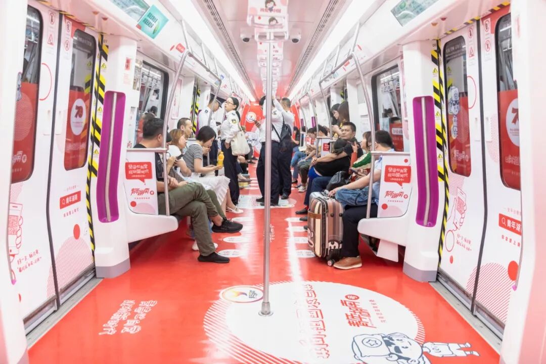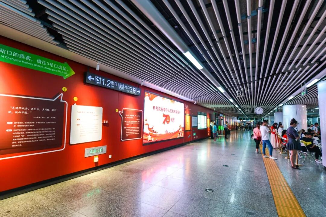 超高的人气使得长沙地铁媒体的价值及影响力也进一步放大,在70周年国庆长假期间,长沙地铁里处处洋溢着“国庆红”,天闻地铁传媒独家运营的长沙地铁空间媒体成为了新时代的主流传播阵地和公共宣传的文化展示窗口,同时也是众多商业品牌发力今年“金九银十”的致胜筹码之一。