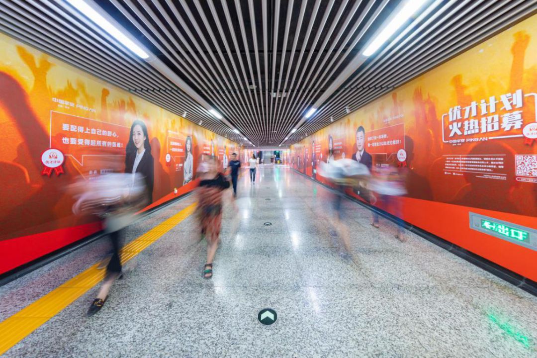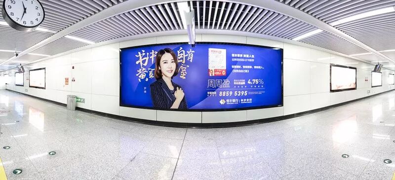 华融湘江银行以优雅大气的红色,点亮五一广场1号通道,在国庆期间华丽亮相,以吸睛的设计推广华融闪贷、悦心存1号等理财产品,为乘客提供财富增值的新选择。