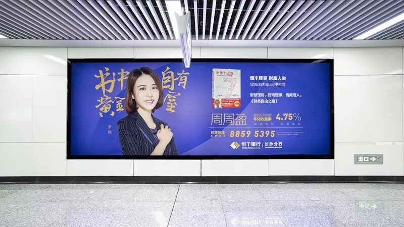 中国平安人寿推出“优才计划”,以明亮的橙色营造活泼的氛围,大篇幅的肖像抢占乘客注意力,充分发挥地铁媒体迫视性优势,使品牌传播效果最大化。 恒丰银行长沙分行 媒体形式:超级灯箱 恒丰银行长沙分行在地铁进行图书漂流之后,再次联手天闻地铁传媒上刊超级灯箱,分享理财好书,推荐优质金融产品,让书香融入金融。 泰康人寿