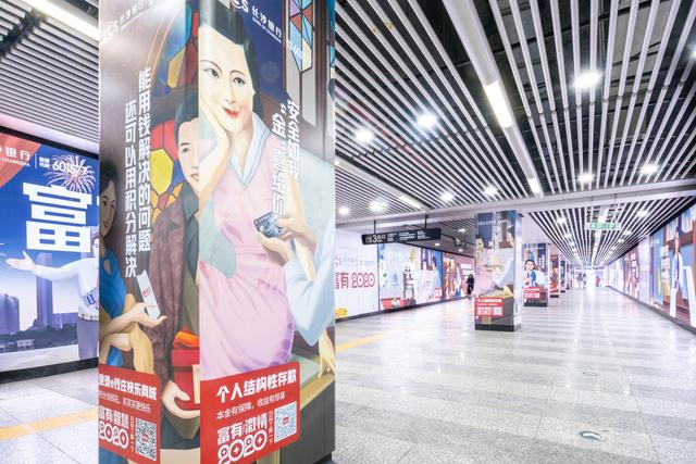 除了五一广场3A品牌通道,长沙银行「富有2020」画面还同步登陆五一广场轨行区单边灯箱、火车南站品牌站厅,愿每个人拥有一个「富有」的2020!